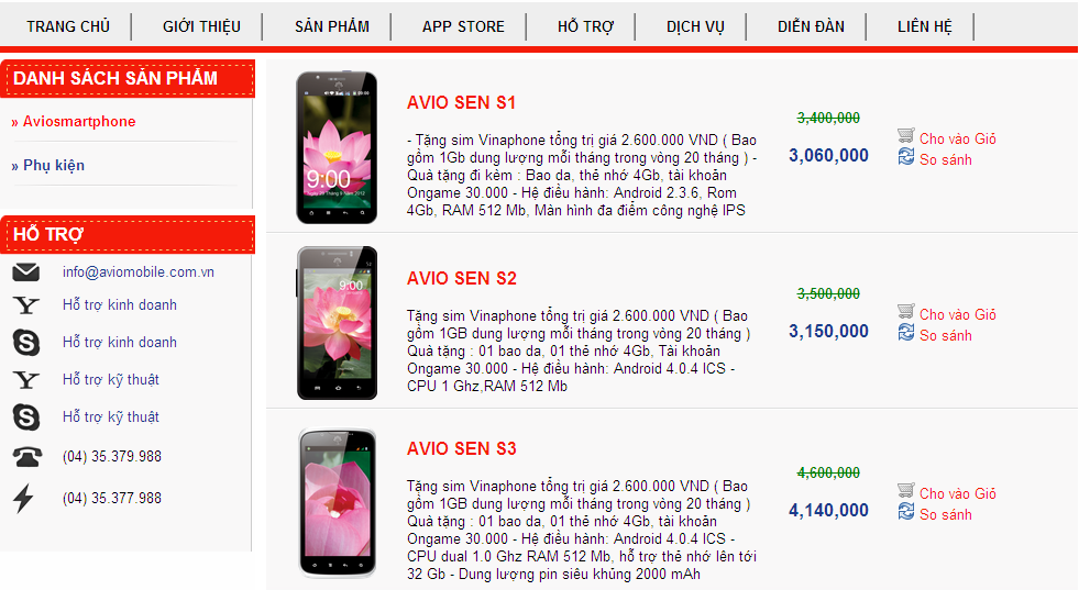 Thiết kế website bán hàng AVIOSEN, website bán sản phẩm điện thoại